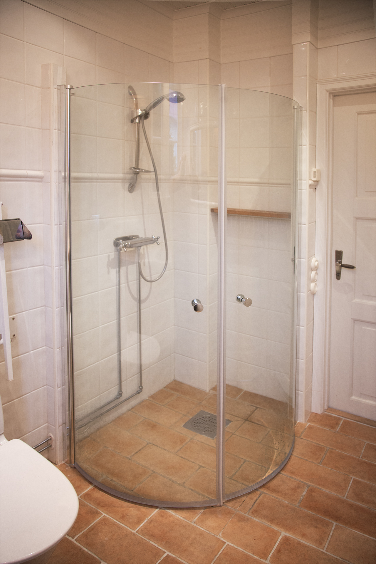 Fräscht badrum med dusch och toalett.