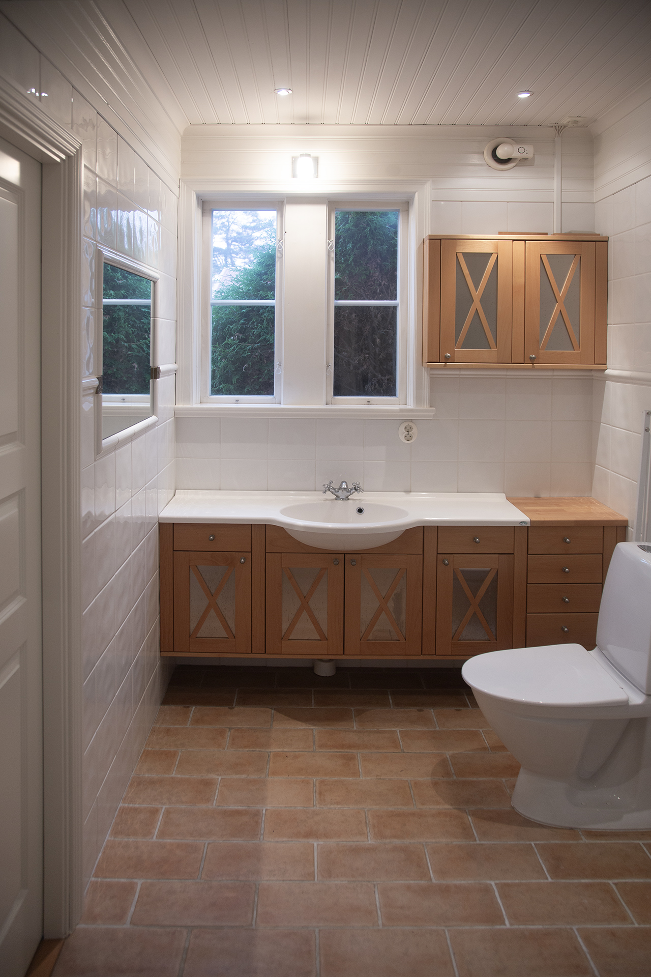 Stort och ljust kök. Det höga taket ger en känsla av rymd.