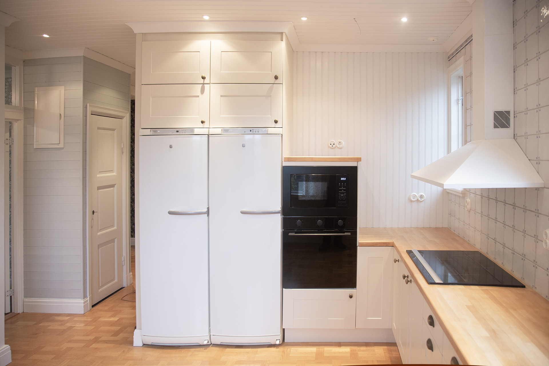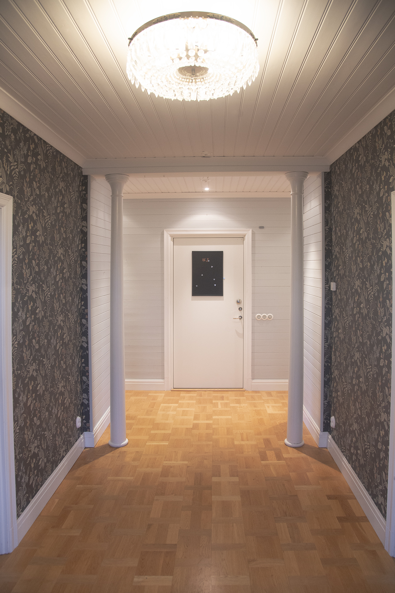Öppen hall mellan rummen och köket.