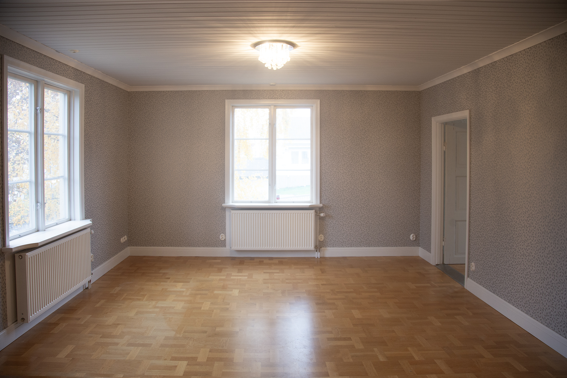 Mellan de stora rummen finns stora skjutdörrar med möjlighet för både öppen planlösning eller stängda rum.